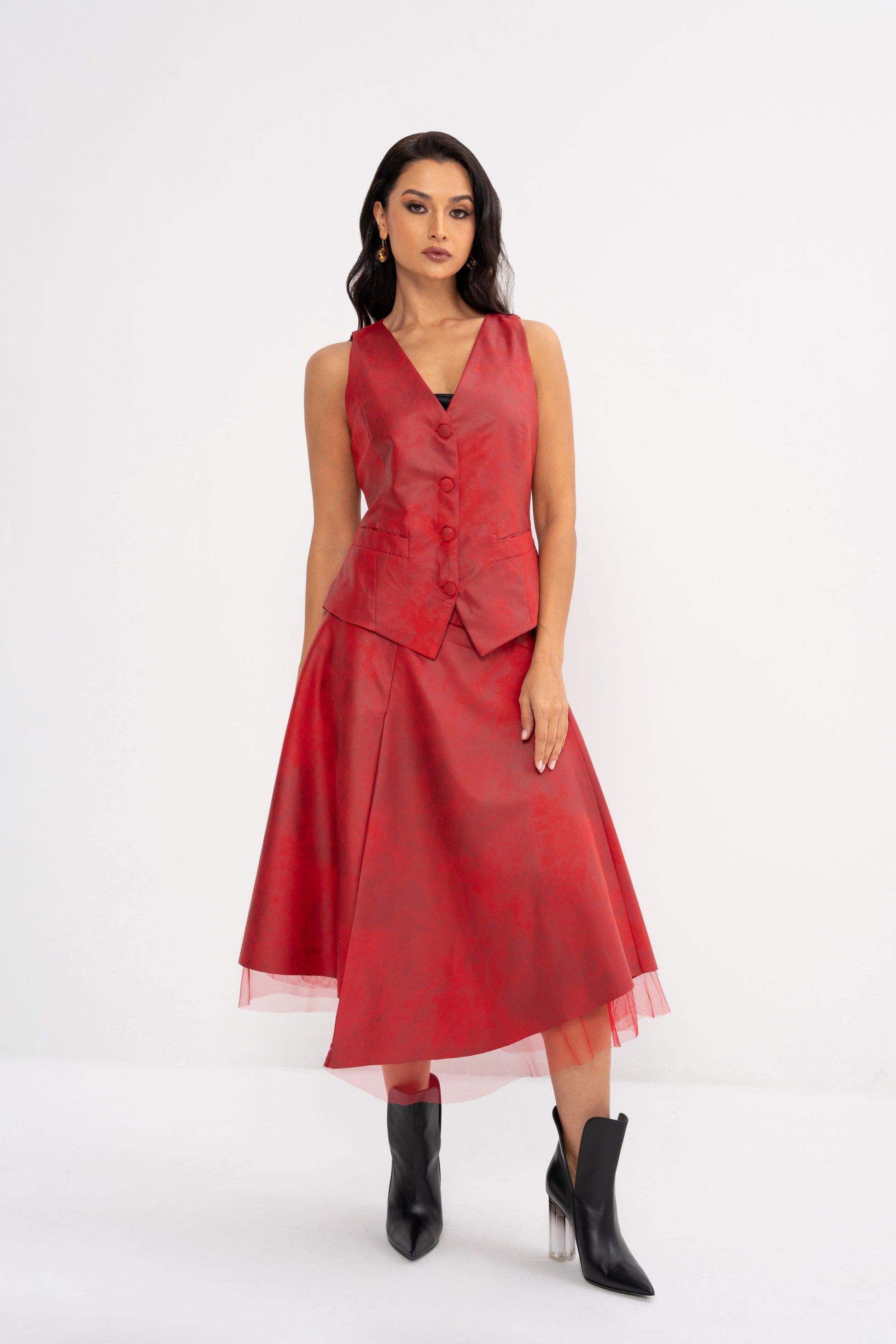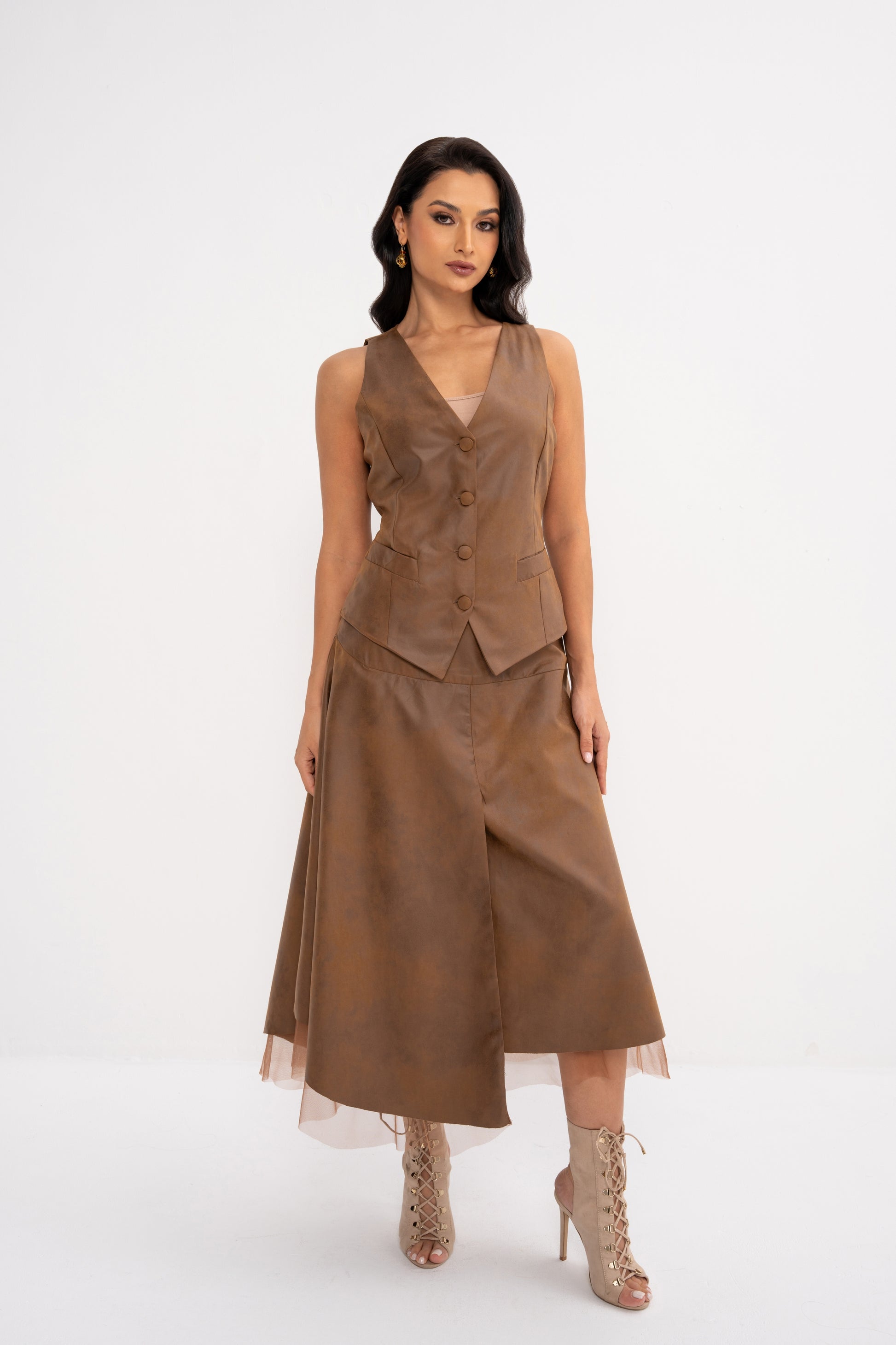 جلد خفيف الوزن | طقم صدرية وتنورة