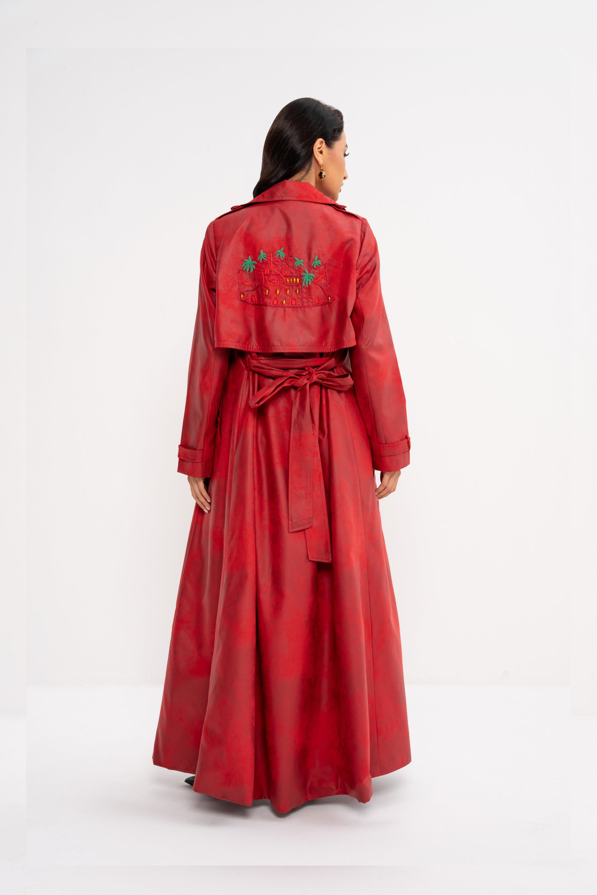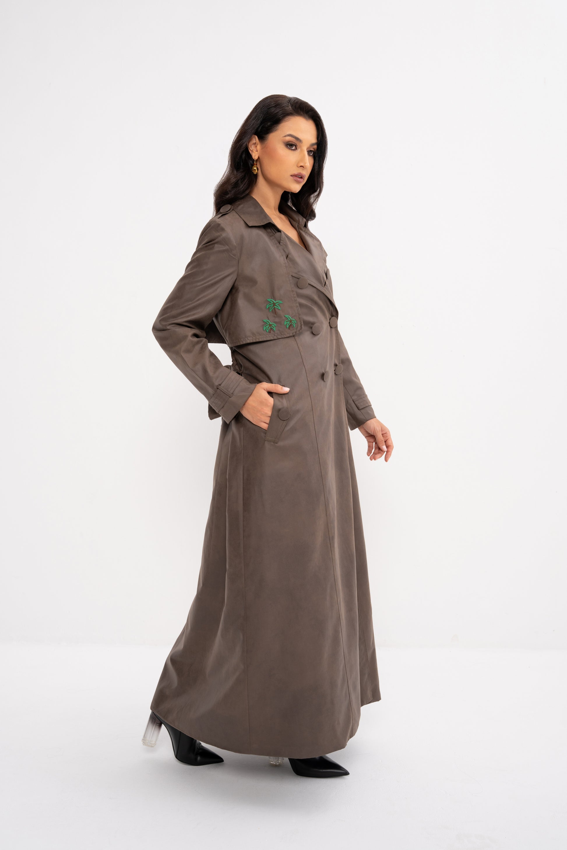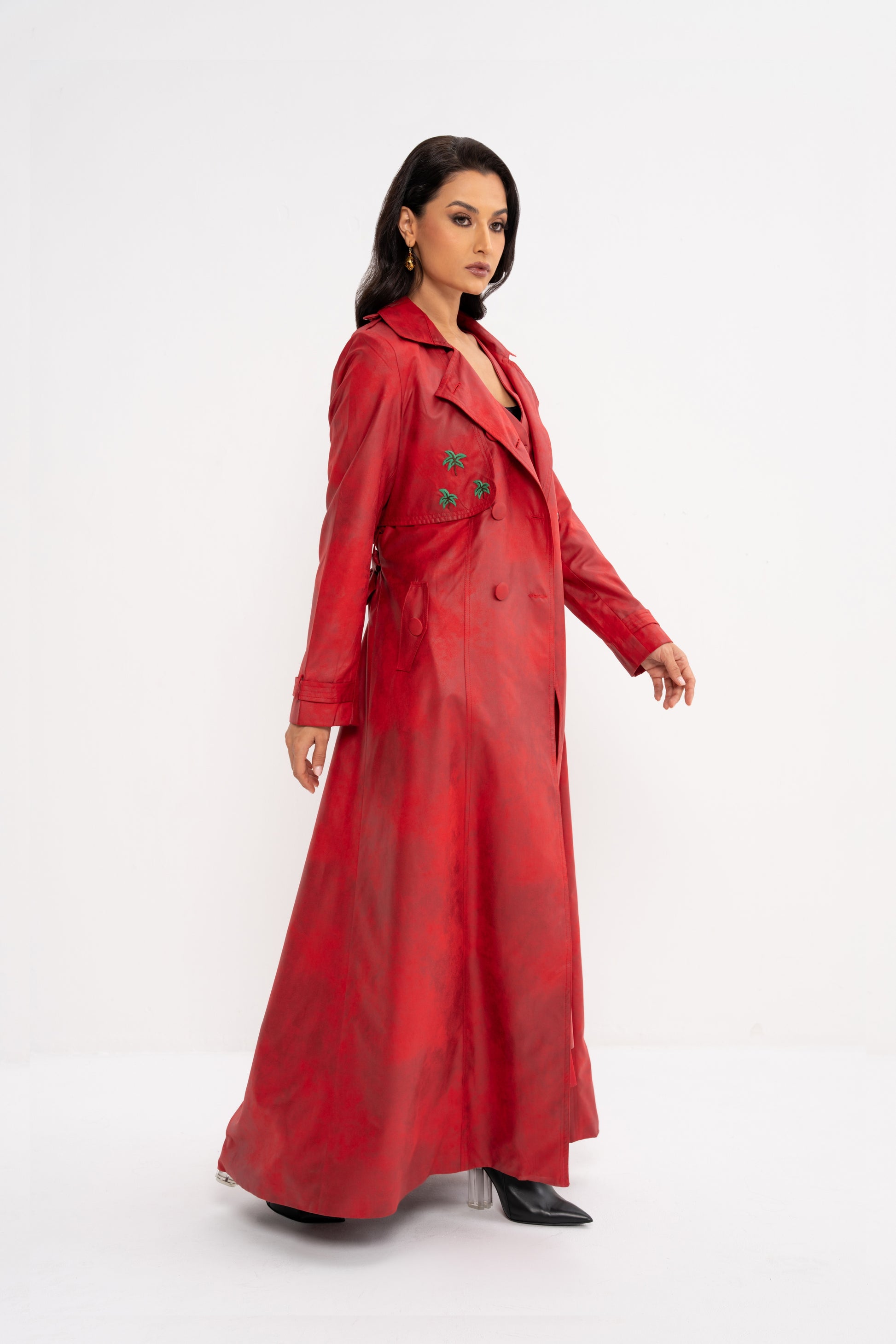عباية ترنش مصنوعة من جلد فاخر خفيف الوزن، تجمع بين القوة والأنوثة في تصميم كلاسيكي أنيق. تتميز بتطريز يدوي على الظهر بخيوط من الصوف والحرير، مما يضفي لمسة فنية راقية على مظهرها الجريء. قطعة فريدة من نوعها تجسد الأناقة والثقة والحرفية الاستثنائية.