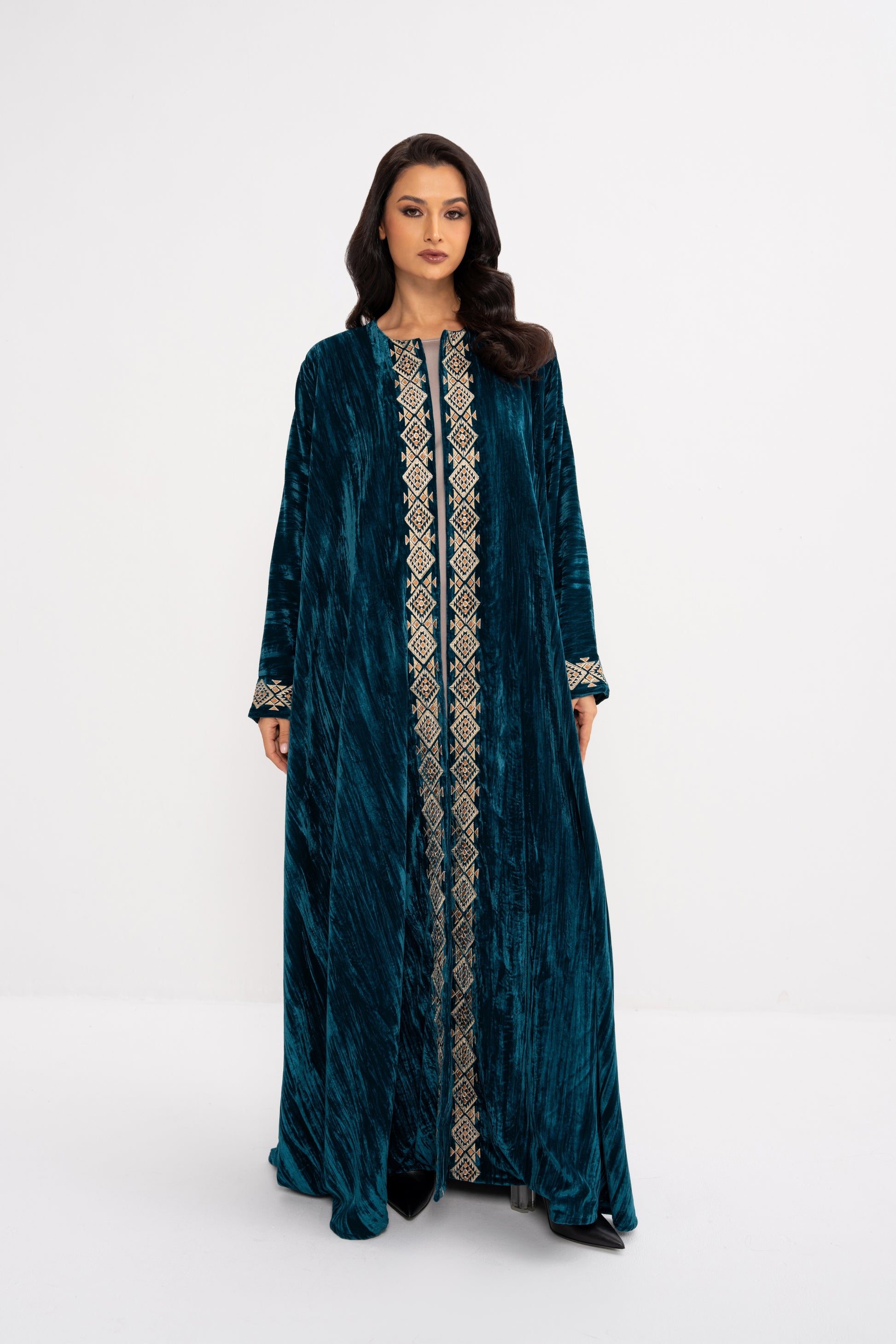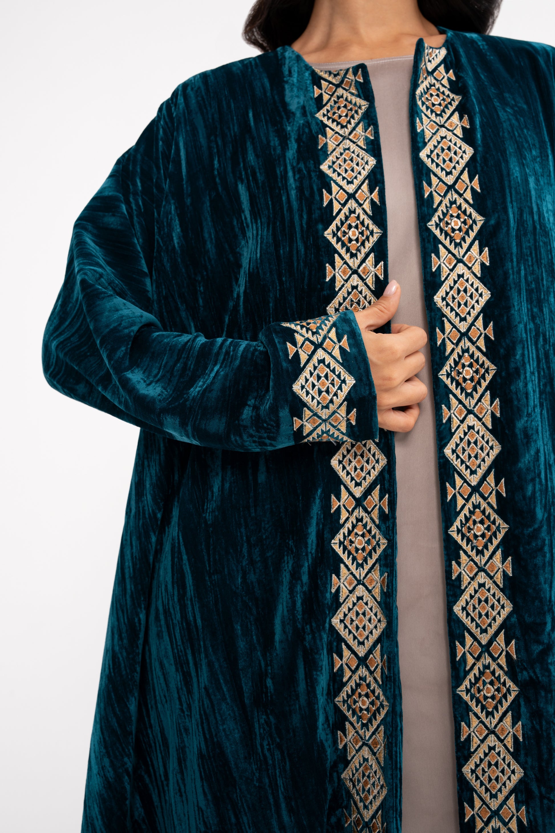 عباية مخملية خفيفة الوزن مع طرحة متناسقة
